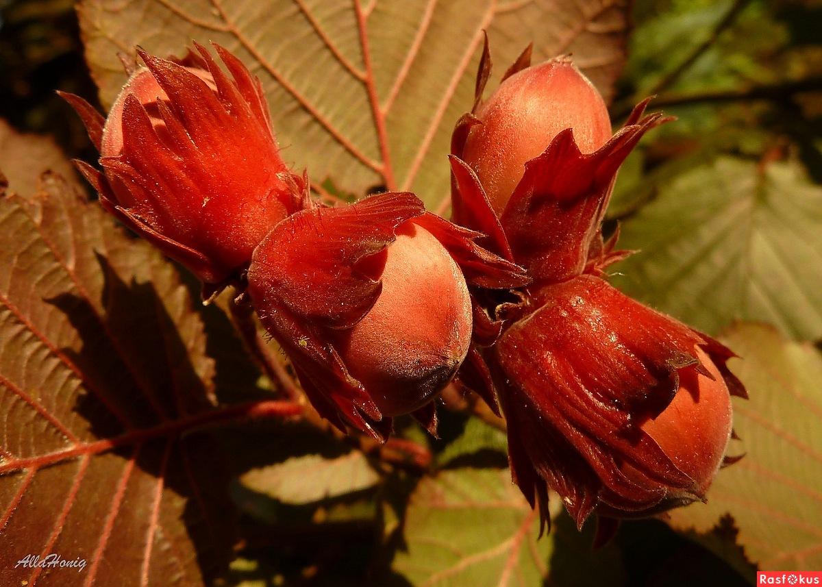 Преимущества сорта Варшавский красный включают высокую урожайность, декоративную ценность и высокое содержание жиров в орехах, что делает их особенно питательными.