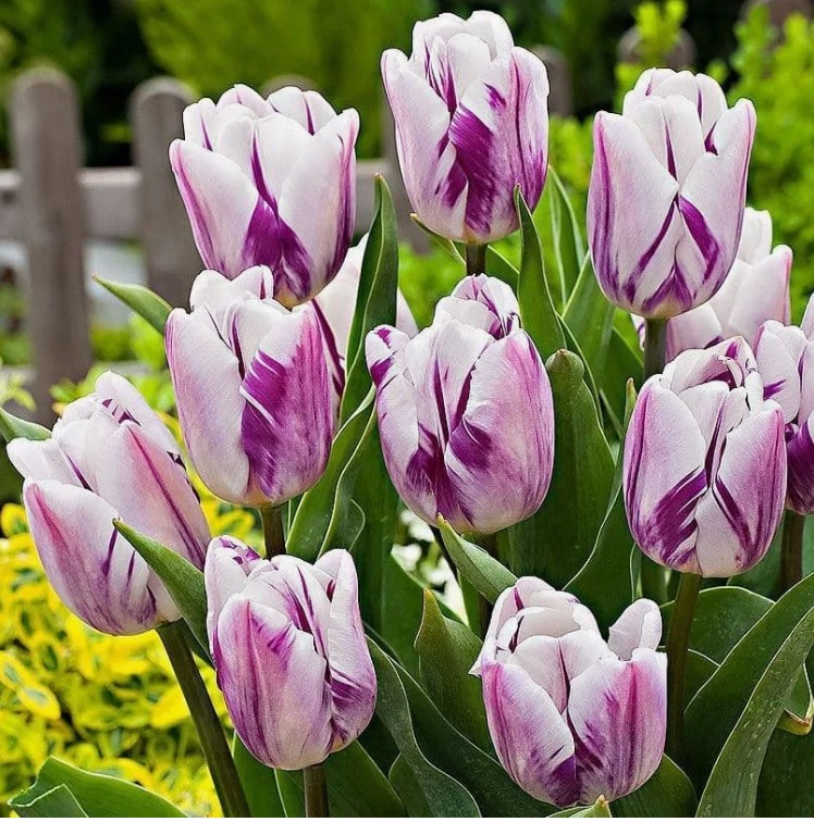 Срезка тюльпанов на 8 марта оптом Тюльпан Флеминг Флаг (Flaming Flag)